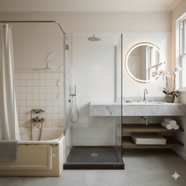 Transform your bathroom into a spa-inspired retreat. We specialize in luxury bathroom remodeling, including waterproofing, tiling, and custom vanity installations.